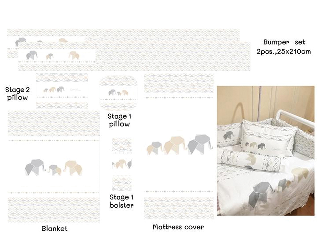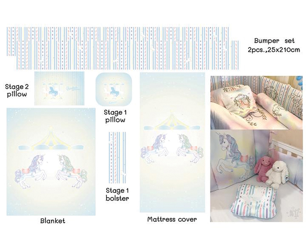 e.g. Bumpers, Pillow cover, Blanket, Bolster, Mattress cover, etc.